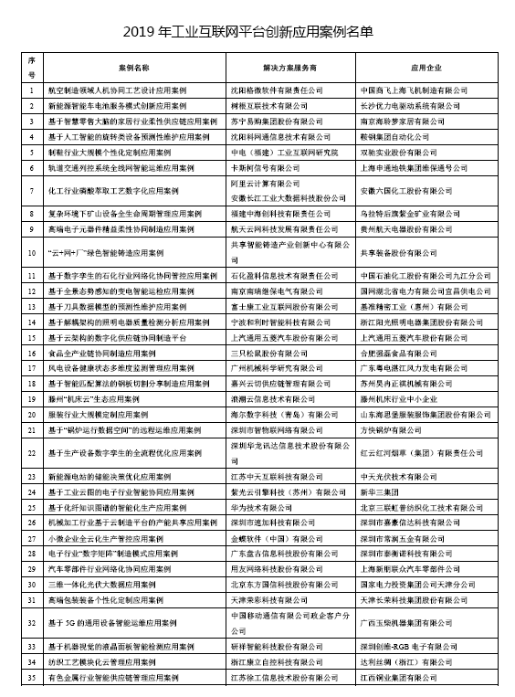 公司入圍工信部2019年工業互聯網平臺創新應用案例名單